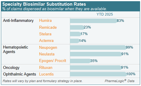 As patents for brand biologic drugs have expired, lower cost biosimilar options have become available. Meaningful use of lower cost Humira® biosimilars was realized in most plans in late 2024 and 2025. New biosimilars for Stelara® and Prolia® became available in 2025 and use is increasing.
