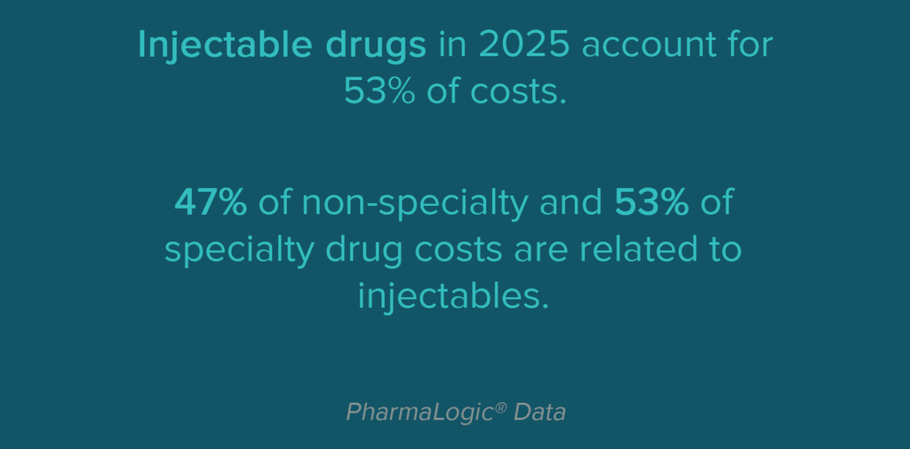 Injectables account for a larger portion of prescription benefit costs. Use of injectable anti-inflammatory, rare disease, respiratory, weight loss, migraine, lipid lowering and insulin drugs has grown.